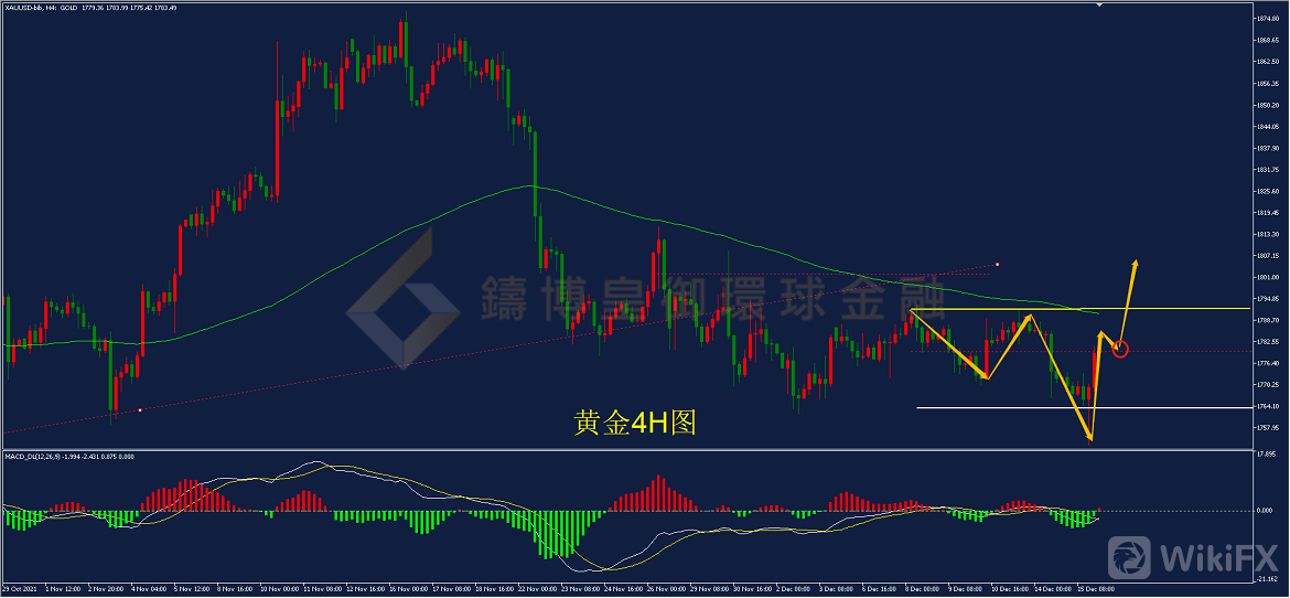 从黄金4小时周期来看,目前行情处于探底迅速拉升阶段,由于昨日市场底部已经探明,今日行情可能继续延续多头行情,由于黄金走出急速反转,市场更可能出现短回踩后就持续拉升的行情。所以今日重点关注小周期回踩支撑,如有短线调整,可轻仓参与多单。