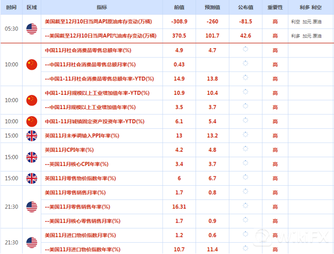 周四(12月16日)美元指数继续走低,因市场对央行一系列政策声明进行梳理,以寻找利率和经济支持方面未来差异的线索;美元兑风险货币走软,兑日元和瑞郎等避险货币也下跌。受助于美元在美联储会议后大幅下跌,现货黄金涨逾1%,创11月30日以来新高至1799.71美元/盎司。油价连涨二日,美油尾盘涨1.54%,美国隐性需求创纪录、原油库存下降和美国联邦储备理事会(美联储/FED)乐观的经济预测,盖过了Omicron变种损害全球消费的担忧。