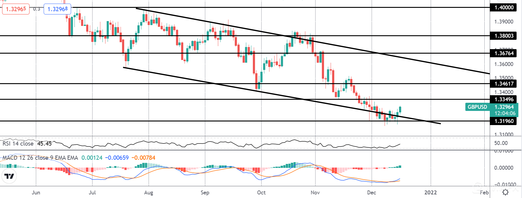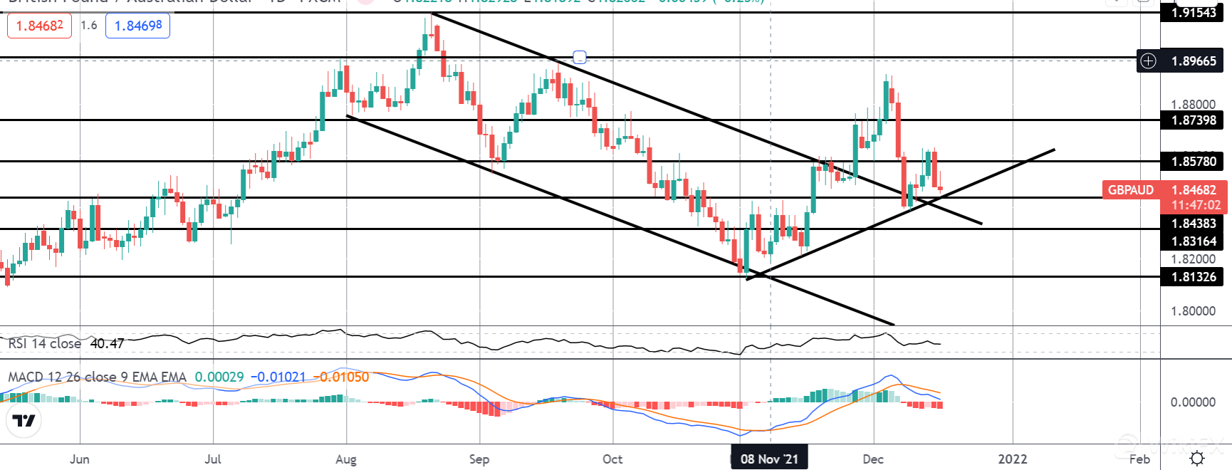 如果今天英镑多头空手而举,特别是如果英国央行对 omicron 敲响警钟,这将对英镑造成严重压力。 近期,英镑疲软可能会为英镑/澳元创造新的下行机会,突破 1.8438 水平(熊通道重新测试,牛市趋势线突破)为之后测试 1.8316 和 1.8132 开辟道路。