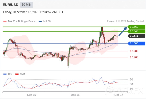 在 1.1305 之上,看涨,目标价位为 1.1345 ,然后为 1.1360 。