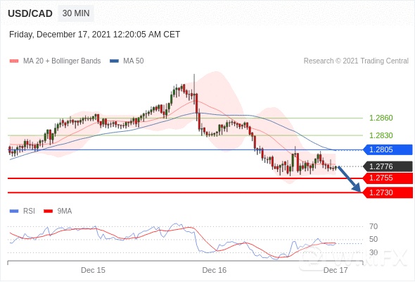 在 1.2805 之下,看跌,目标价位为 1.2755 ,然后为 1.2730 。