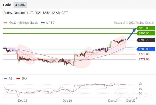 在 1786.00 之上,看涨,目标价位为 1808.00 ,然后为 1815.00 。