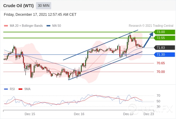 在 71.30 之上,看涨,目标价位为 72.55 ,然后为 73.00 。