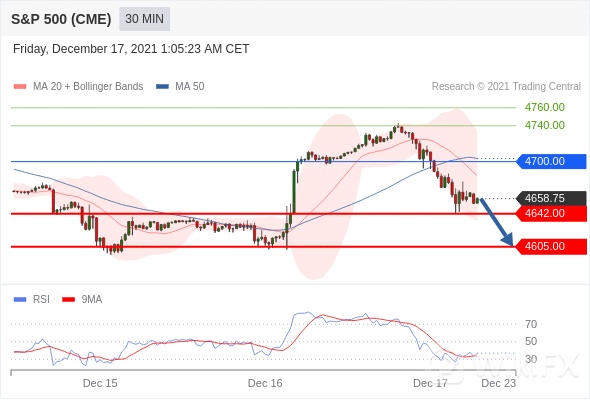 在 4700.00 之下,看跌,目标价位为 4642.00 ,然后为 4605.00 。