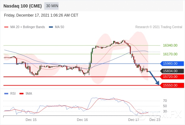 在 15980.00 之下,看跌,目标价位为 15720.00 ,然后为 15550.00 。
