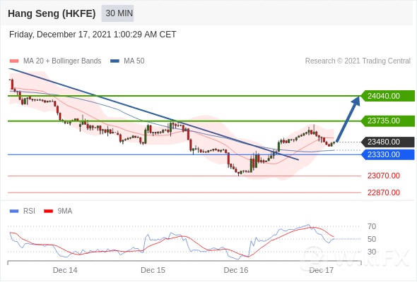 在 23330.00 之上,看涨,目标价位为 23735.00 ,然后为 24040.00 。