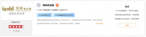 综上所述,我们以汇选网站内,热门的领峰贵金属平台举例,首先,它是香港金银业贸易场AA类行员,说明它获得权威机构的认可。其次,它主标MT4/5系统,在其官网内的相关下载位置也很容易找到,使用起来方便快捷。最后服务方面,其邮箱、电话、QQ等信息均齐全,在官网也能轻松找到24小时在线客服咨询端口;投资服务方面,专栏内也有定时更新的评论,以及提供全天极速存取服务,注资10分钟入账,网上取款2小时到账。不论是掌控资金流向,还是流程都简单清晰,投资者确可信赖,此外,领峰品牌也有10年的安全运营历史,这也是一个加分项。