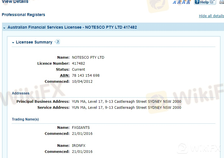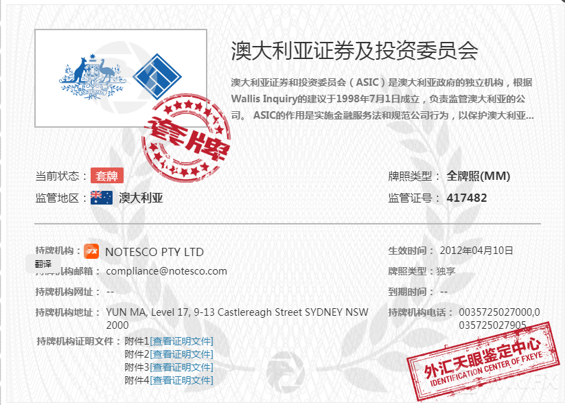 从澳大利亚ASIC官方网站上我们可以看到持有这张牌照的公司名为Notesco Pty LTD,并非是FXPace所属公司Notesco Pty Limited,百分之百是套牌平台!