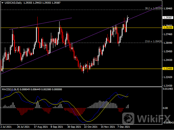 截至昨日,美元兑加元续创去年12月以来新高,收于1.2938。自今年10月企稳反弹以来,该货币对录得逾5%的涨幅。