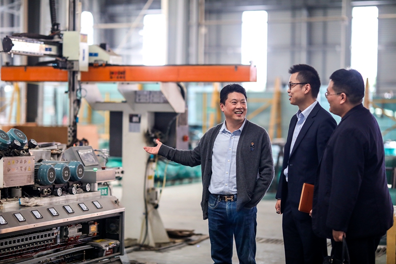 浙江耐特玻璃科技股份有限公司是龙游县一家玻璃制造企业。前几年,在邮储银行衢州龙游县支行小企业流动资金贷款1745万元的支持下,该企业顺利完成了技术改造和设备升级,年产值比改造前提升了60%。图为该行客户经理在企业走访,了解技术改造后企业生产经营情况。