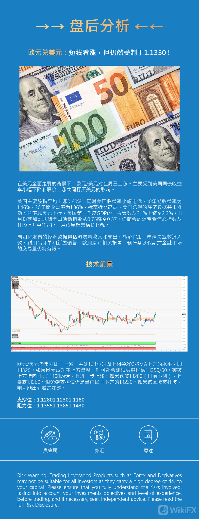 欧元/美元短线看涨,但仍然受制于1.1350!