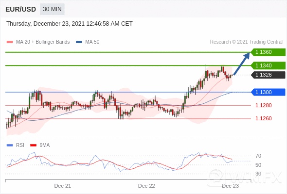 在 1.1300 之上,看涨,目标价位为 1.1340 ,然后为 1.1360 。