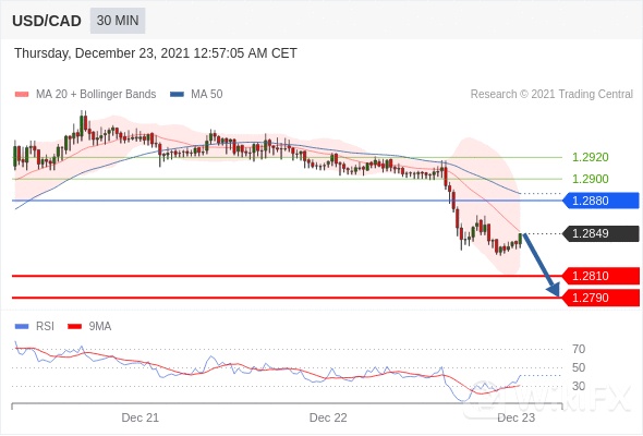 在 1.2880 之下,看跌,目标价位为 1.2810 ,然后为 1.2790 。