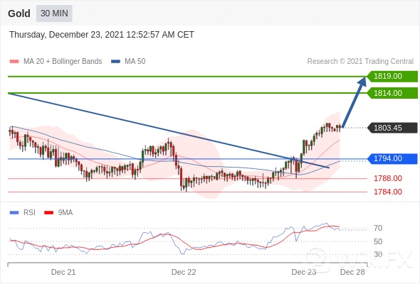 在 1794.00 之上,看涨,目标价位为 1814.00 ,然后为 1819.00 。