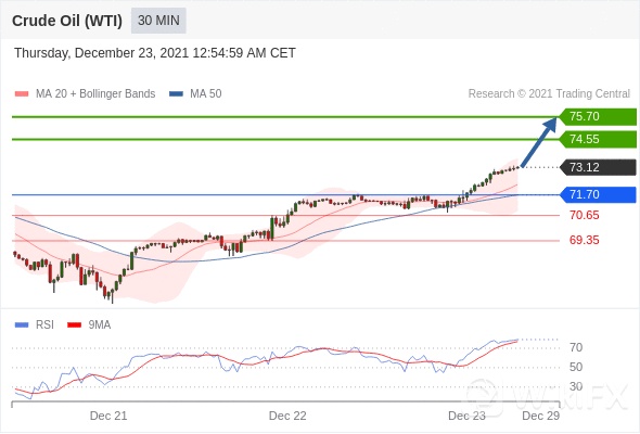 在 71.70 之上,看涨,目标价位为 74.55 ,然后为 75.70 。