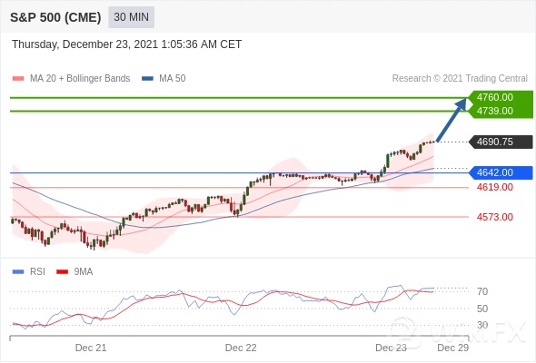 在 4642.00 之上,看涨,目标价位为 4739.00 ,然后为 4760.00 。