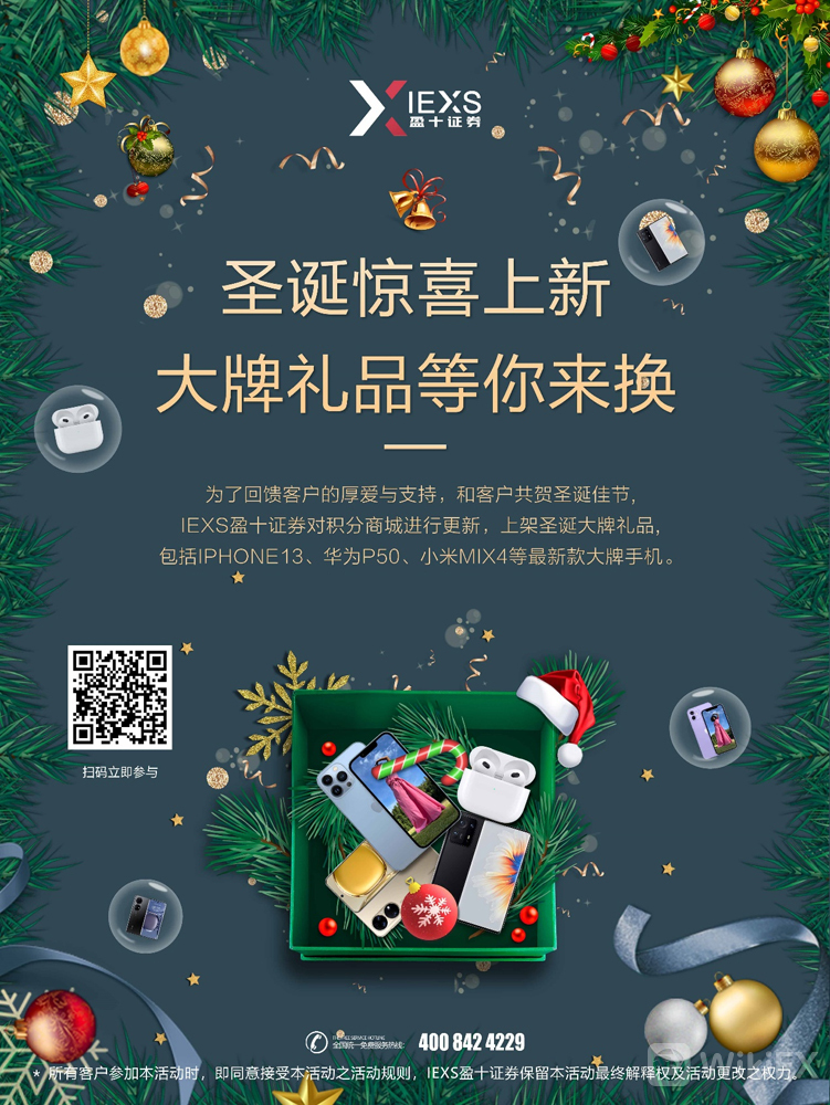为了回馈客户的厚爱与支持,和客户共贺圣诞佳节,IEXS盈十证券对积分商城进行更新,上架圣诞大牌礼品。一直以来,IEXS盈十证券为了给客户提供绿色、健康的金融生态环境,推出了全新“交易+商城”模式,客户可以用交易积分直接在商城购物。这不仅可以通过金融交易来推动实体经济发展,也使交易系统和商城强强联合,达到共赢,只为更好地服务经纪商与客户。