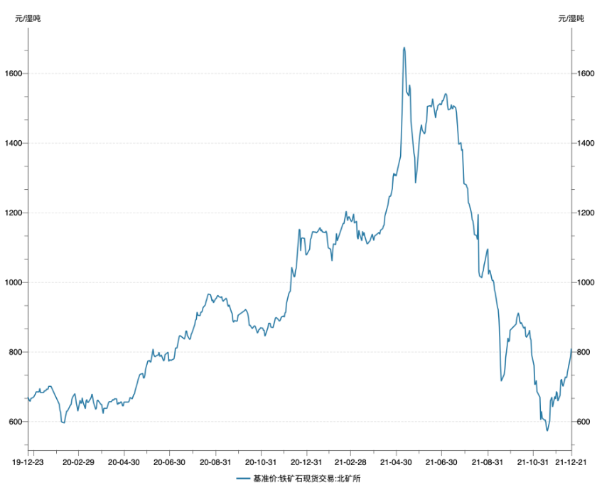 从5月开始,期货交易所、国家发改委等陆续对于铁矿石不合理涨价展开调控,中国钢铁工业协会多次批评普氏指数严重背离现货定价定位。北京国际矿业权交易所的数据显示,铁矿石价格从6月开始逐渐下调,目前已经回到疫情前后价格。