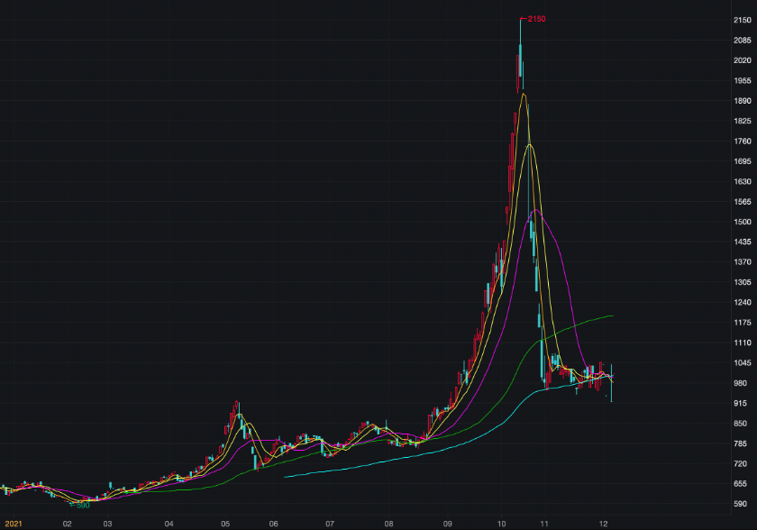 如果要展望2022年,一方面,赣锋锂业(002460)、宁德时代(300750)、华友钴业(603799)等巨头都纷纷在国内外“抢矿”,锂盐供应有望在未来得到缓解;另一方面,继芝商所上线首个锂期货合约后,国内的上期所、广期所等都表态要研发新能源金属期货合约,以锂为代表的新能源领域有色金属,有望成为新的大宗商品。