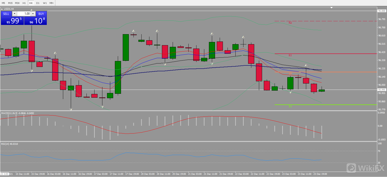 美元指数连续2天回落接近96主支撑位,主要受限于圣诞新年假期的低流动性,预计在明年1月交易员回归的情况前,美元都将持续波动在96点位附近,短期有望继续小幅下跌,但波动非常有限。