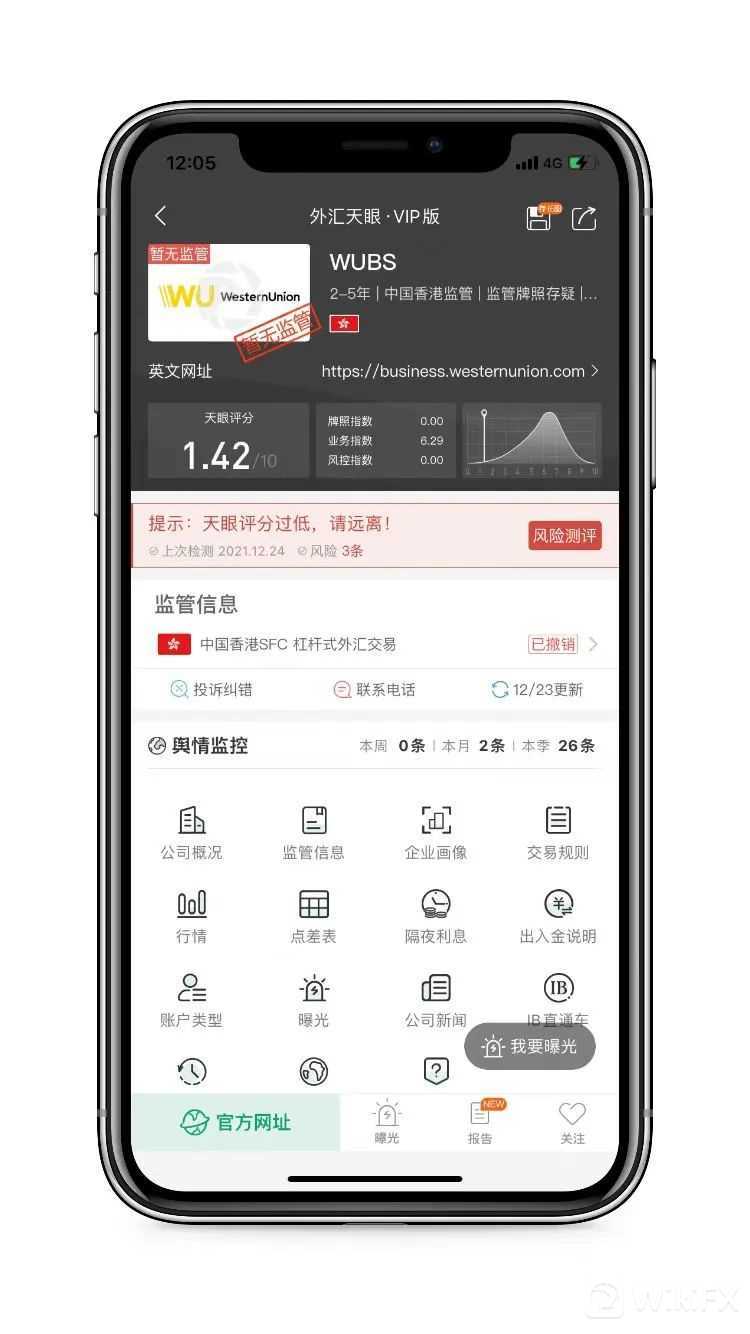 WUBS,天眼评分1.42分,其宣称持有的牌照被撤销后,当前暂无任何实际有效的监管牌照,存在巨大风险,建议投资者们远离。