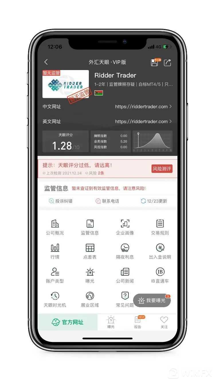 Ridder Trade,天眼评分1.42分,其宣称持有的牌照被撤销后,当前暂无任何实际有效的监管牌照,存在巨大风险,建议投资者们远离。