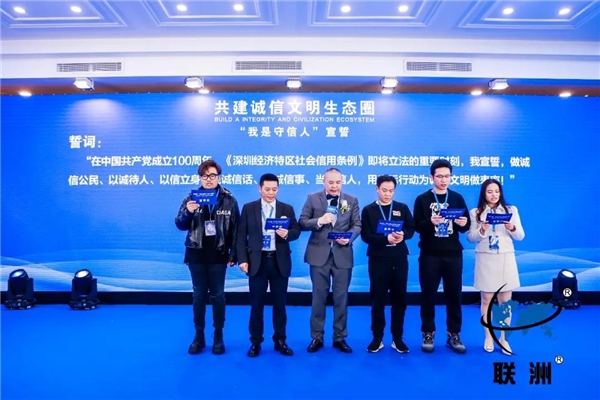 在“我是守信人”宣誓环节,由活动主办方深圳市新的社会阶层人士联合会团队上台领宣,带领与会人士立下诚信誓言:“在中国共产党成立100周年,《深圳经济特区社会信用条例》即将立法的重要时刻,我宣誓,做诚信公民、以诚待人、以信立身,说诚信话、做诚信事、当诚信人,用实际行动为诚信文明做表率!”