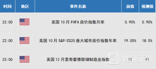 昨日市场重新衡量新冠病例飙升对全球经济增长的影响,美元指数小幅下跌,10年期美债收益率跌至1.475%,但直至目前为止大多Omicron感染者症状轻微,油价与股市联袂上涨,纳指连续第五日上行,受北约准备与俄罗斯发生大规模武装冲突的消息推动,美油涨逾3%,现货金价上行至五周高位,收报1811.71美元/盎司。