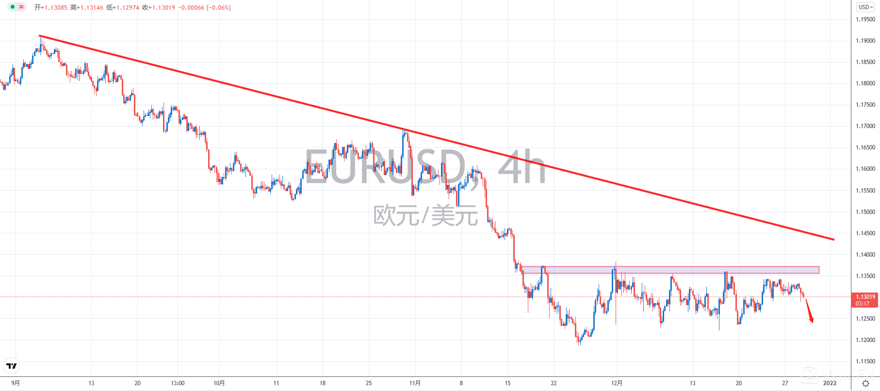 【技术点评】:H4周期,欧元保持空头走势,目前受制于水平阻力位。