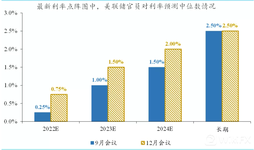 截至本月 22 日,市场预期,明年 3 月、6 月和 12 月美联储各加息一次,后年、即 2023 年 2 月第四次加息的可能性有 40%。另外,明年 11 月加息的可能性达 47%。