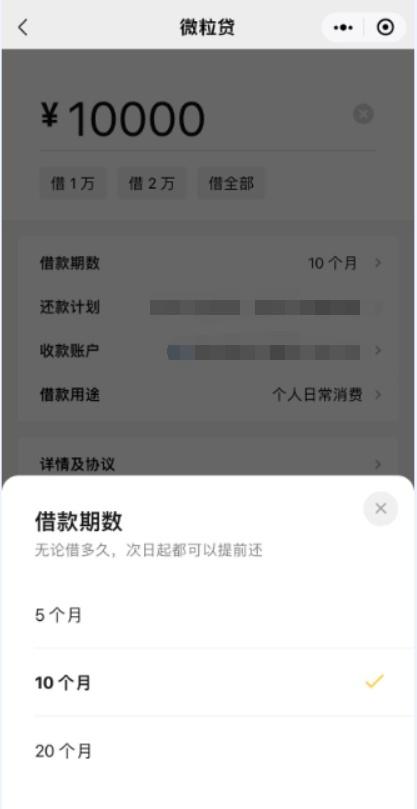 微粒贷是按日计息,随借随还,借几天就付几天利息,应急、周转都很合适。如果你要借的金额比较大,还能选择合适的分期还款,缓解每期还款压力。
