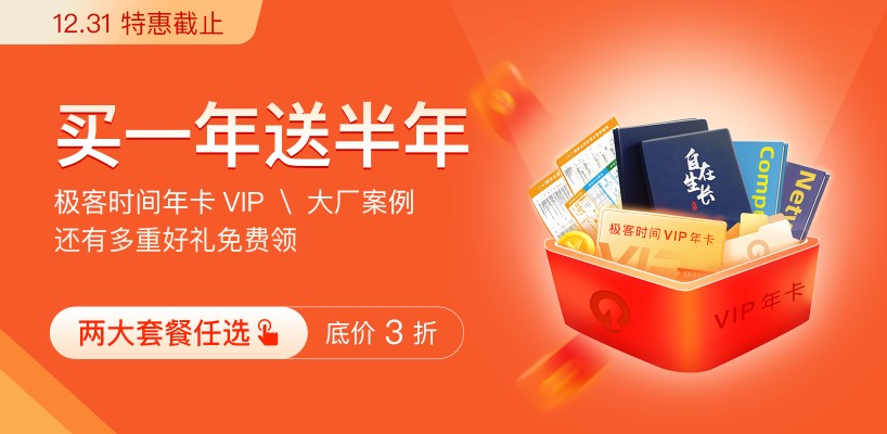 极客时间的“买一年送半年”活动已经进入倒计时阶段,打算参加该优惠的小伙伴们可尽快登陆极客时间APP了解详情并抢购。