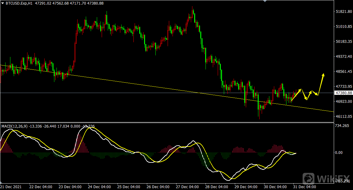 从比特币1小时图来看,比特币短线极可能会延续昨天的反弹,即使再下也是次低点,这和下跌是同级别的,会持续两三个交易日,若是接下来破昨天低点可以止损,但不做空,后市仍是找机会接多。