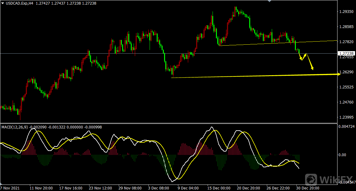 从美元兑加元4小时图走势来看,美元兑加元走出最近低点下破,且还未有急速回拉的情况,最近大概率很难再收上去,短线可以顺着下破做空,目标位是月初的低点附近。