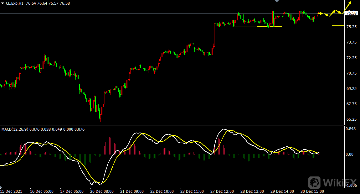 从WTI原油1小时图来看,原油目前的震荡相较于之前的拉升明显是多头开始弱势,但却迟迟未破位,也增加了中继的可能,暂时还是接多,上破加仓,下破则止损。