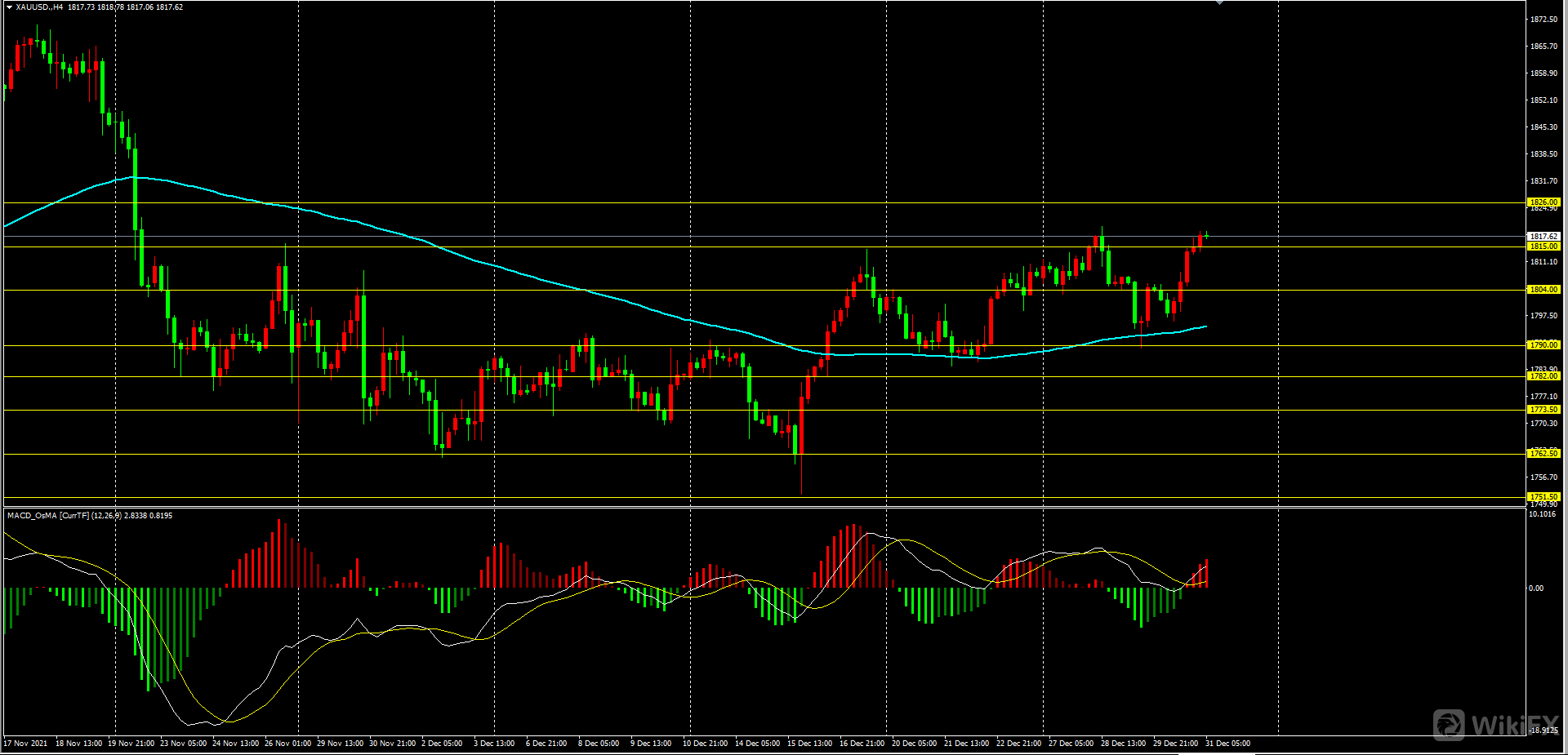 黄金昨日开盘1803.87,最高1817.09,最低1796.15,收盘1814.80,先跌后涨,日线收阳。
