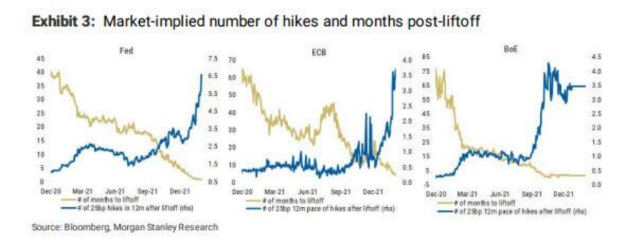 大摩的欧洲经济团队上周修正了对欧洲央行的货币政策预测,预测QE将在9月结束,12月开始加息,这将使存款利率在2023年第一季度升至零。