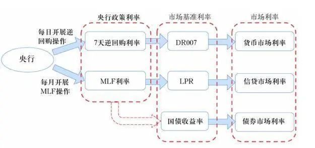 即主要通过货币政策工具调节银行体系流动性,释放政策利率调控信号,在利率走廊的辅助下,引导市场基准利率以政策利率为中枢运行,并通过银行体系传导至贷款利率,形成市场化的利率形成和传导机制,调节资金供求和资源配置,实现货币政策目标。