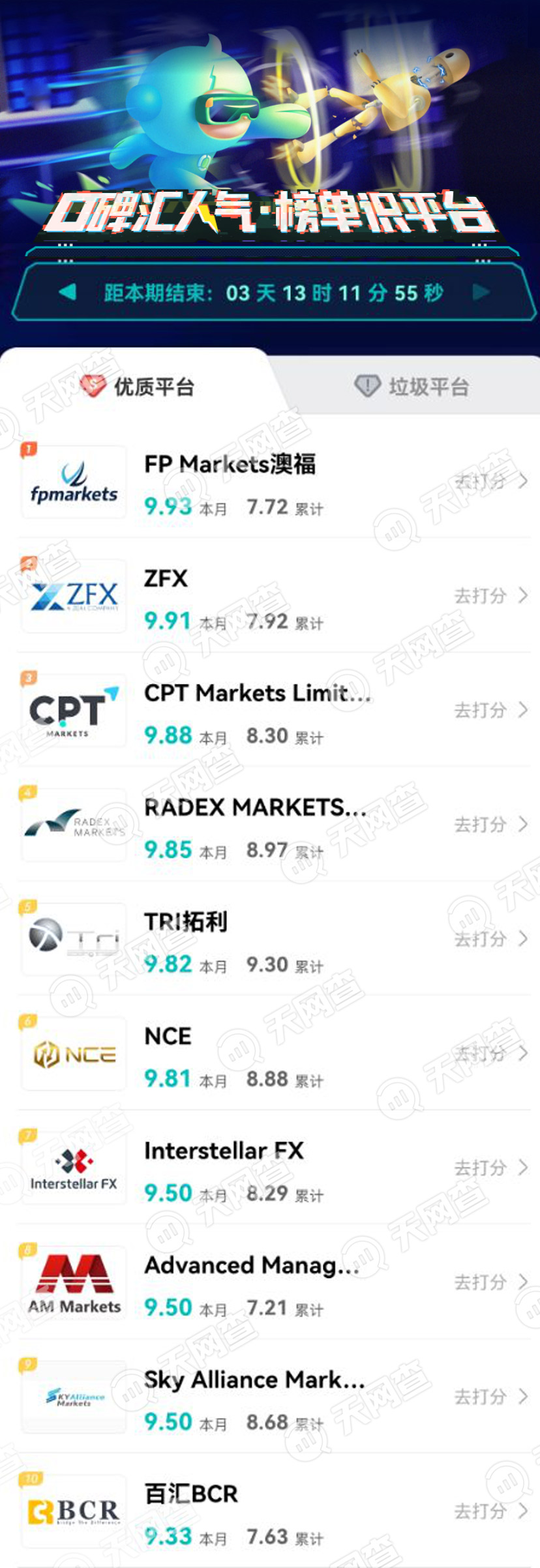 除了以上3个平台,还有TRI拓利、RADEX MARKETS 瑞德克斯、NCE等7个平台登上优质平台榜。