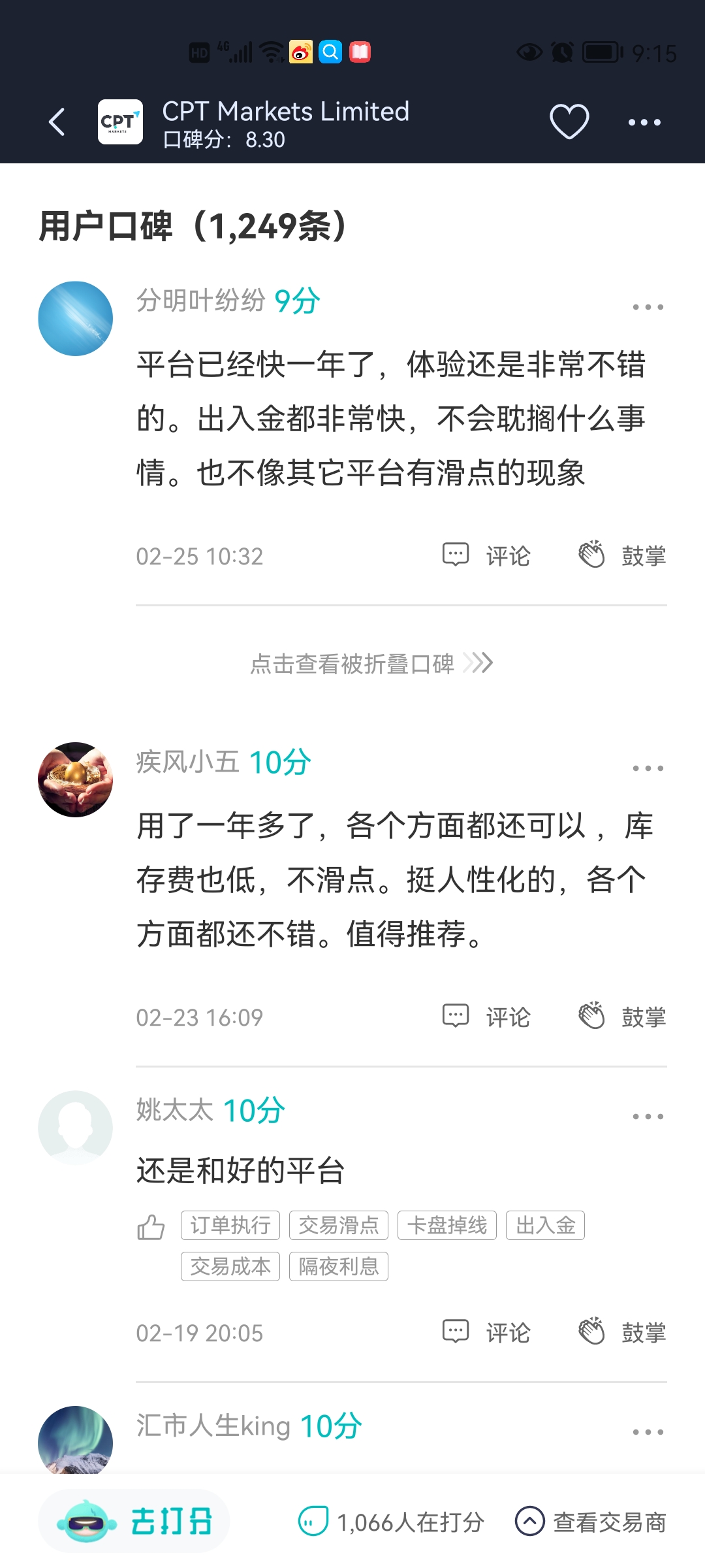CPT也是一个英国交易商,成立于2008年,主要持有FCA MM做市商牌照。在新增的口碑评论中,CPT的客服专业度方面广受好评;除此以外,其在出金速度、平台稳定性方面也受到很多用户的赞扬。