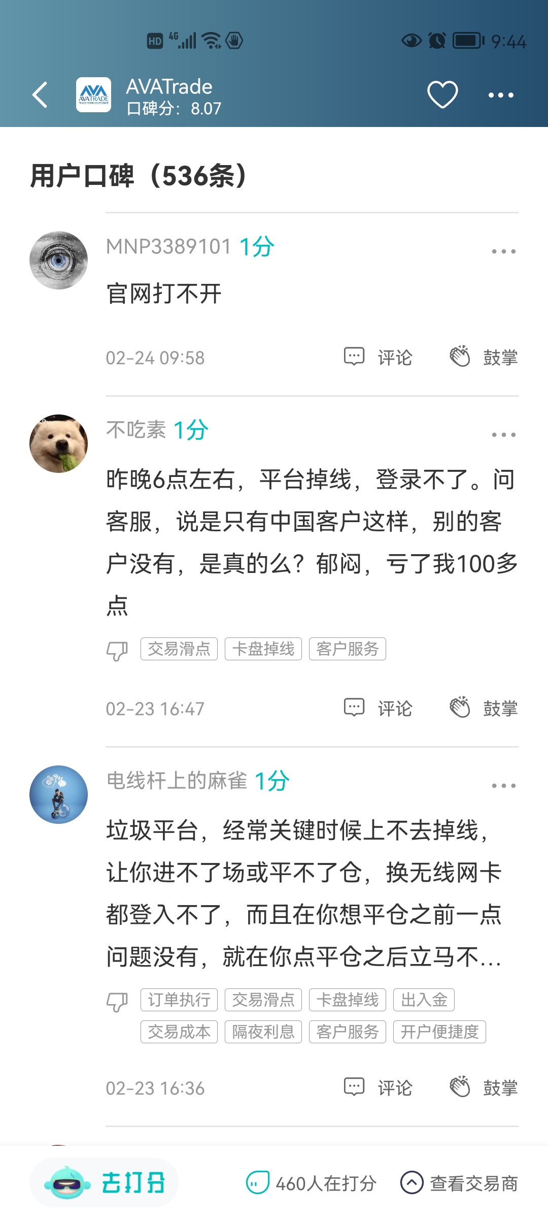 从天网查看,AVATrade拥有8个监管牌照,其中不乏FCA、ASIC等我们熟悉与认可的牌照。目前,其用户评论是好坏都有,有人觉得用着不错;但因为其最近出现过一次官网无法访问、平台掉线的情况,导致多名用户打出低分,遭遇上周口碑滑铁卢。