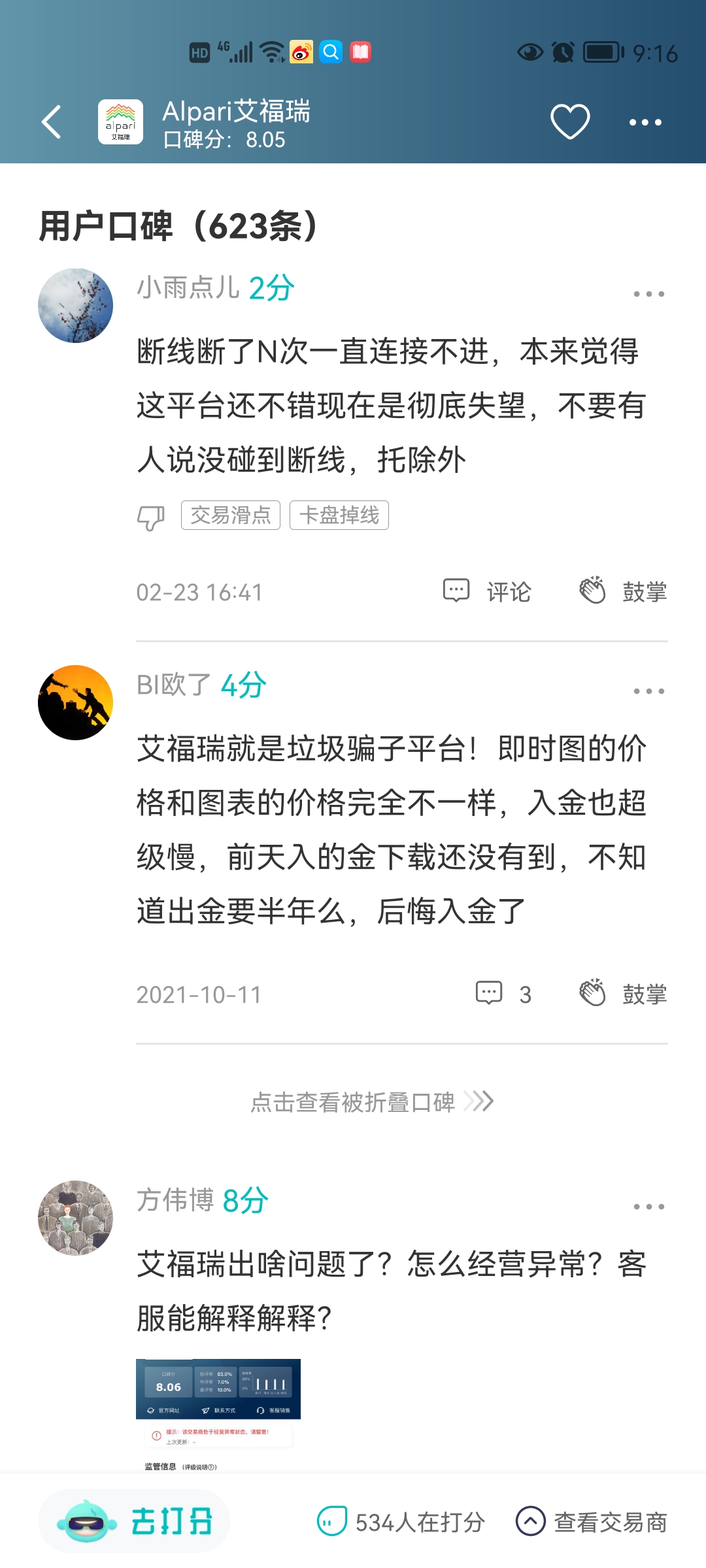 Alpari艾福瑞也算是国内交易者耳熟能详的一个平台了,之前口碑一直不错,有用户解释他一直用该平台多年的原因时说“平台监管虽然不太怎样,但是奈何人家服务好,交易品种也多,成本也不高”。此次登上垃圾榜,原因和前面的AVATrade一样,也是遭遇了掉线,导致用户多次无法登陆。
