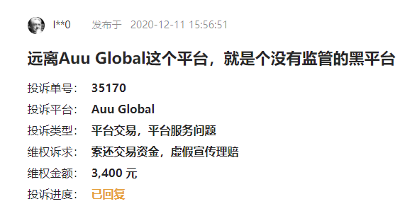 Auu Global被投诉的事情并非第一次,早两年,就有另一位汇友遇到了同样的问题。他仅仅在平台入金1个月,就被客户经理拉黑了,账户资金也无法提现。