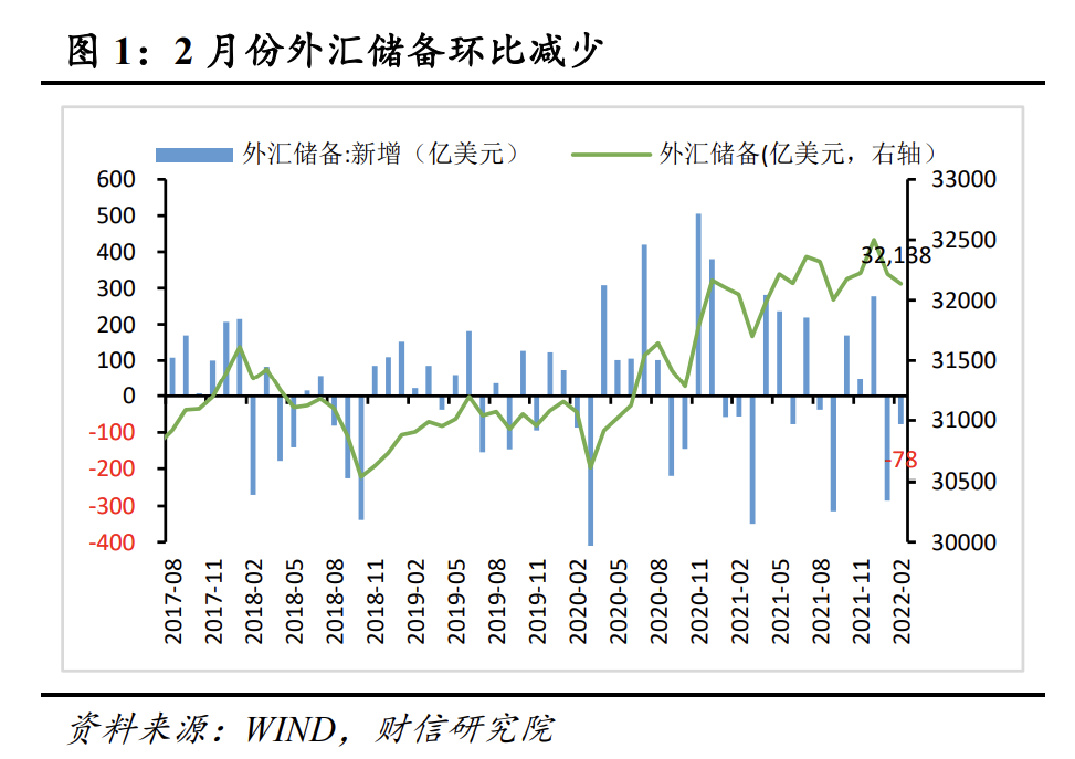 事件:2022年2月末,中国外汇储备32138亿美元,较1月末减少78亿美元,较去年同期增加88亿美元(见图1)。以SDR计,2月末我国外汇储备为23040亿SDR,较上月减少107亿SDR。