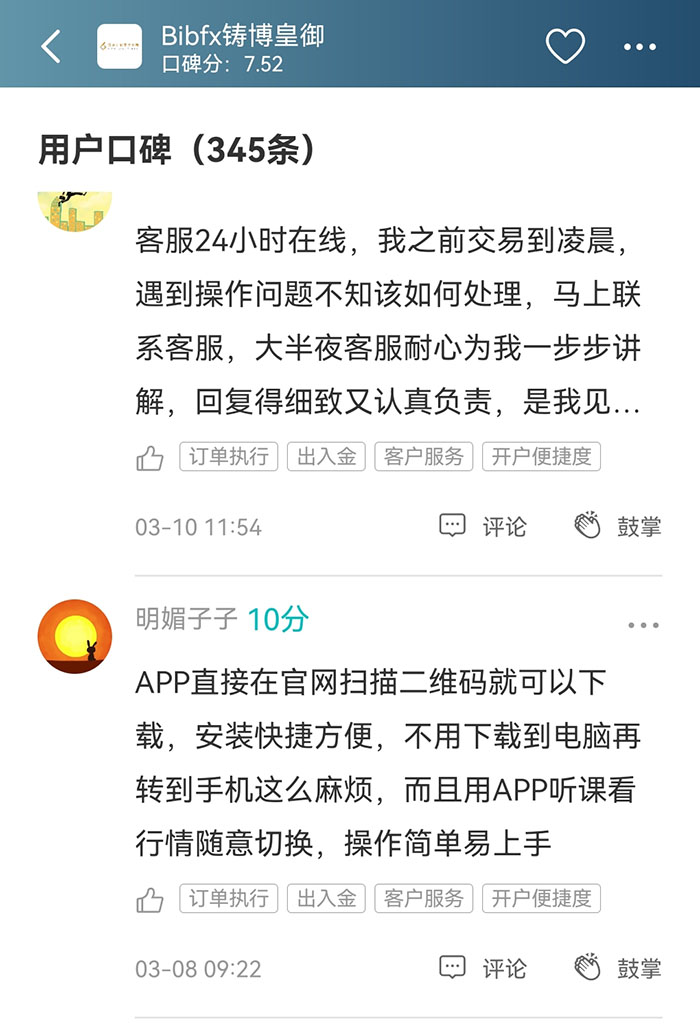 BIBFX铸博皇御仅仅是香港金银业贸易场的会员,并没有受到任何金融监管机构的监管。但看评论区居然有不少汇友打出高分,没监管的平台风险巨大,平台随时可以卷款跑路,建议交易者远离。