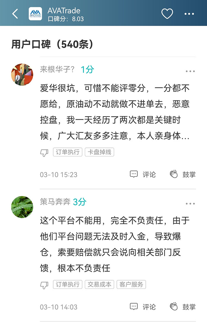 虽然AVATrade持有8国金融监管牌照,但当用户体验欠佳,再多的牌照也不能掩盖差口碑。