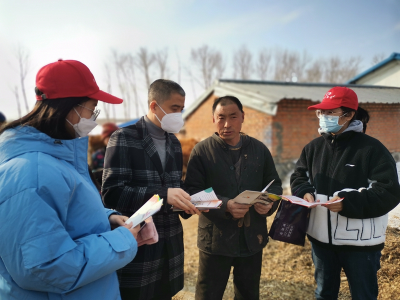 在“3·15国际消费者权益日”来临之际,人行黑龙江克东县支行赴定点对口帮扶村春和村开展“送金融知识下乡”活动,重点宣传防诈骗、假币识别、防范非法集资等金融知识,帮助村民提高金融素养和风险防范意识,鼓励村民大力发展特色养殖产业,巩固拓展脱贫攻坚成果和服务乡村振兴。图为该行工作人员向村民宣传金融知识。