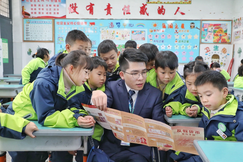 “3·15”国际消费者权益日来临之际,浙江农信辖内路桥农商银行通过开展“金融百晓护航幸福晚年”“金融百晓引路智慧少年”等一系列普惠活动,进一步提高广大消费者维权意识和风险防范意识。上图为该行工作人员在台州市路桥区金清镇实验小学,向学生们宣讲反假货币等金融知识。