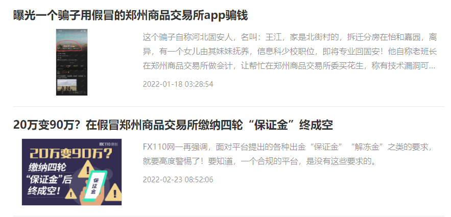 黑平台,不仅敢冒充受到多国监管机构监管,也敢直接照搬它们的网站。天网查之前所写的曝光文,一般都是冒充国外的交易平台,毕竟存在语言和法律法规差异,更容易迷惑他人。但今天汇友曝光的这个黑平台居然直接冒充郑州商品交易所。