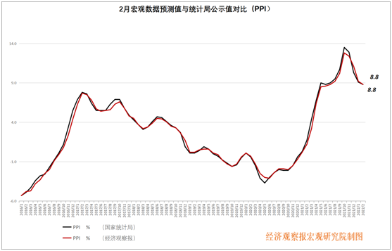 PPI: 回落速度将放缓PPI公布值(同比):8.8%